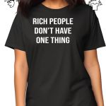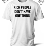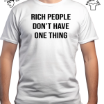 “For those who understand that even the rich can’t have it all, the ‘Rich But Never Enough’ T-shirt delivers a playful jab at greed. Featuring ‘Rich People don’t have 1 thing’ on the front and ‘Enough’ on the back, this tee adds humor to the reality of wealth. Made from soft, high-quality cotton, it’s comfortable for daily wear and great for starting conversations.”
